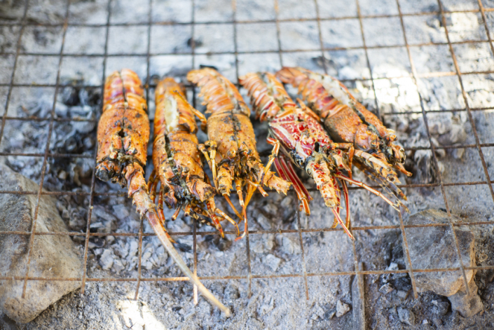 – Seafood barbecue on the beach at approximately 12:45 PM, dinner, beach time, and relaxation